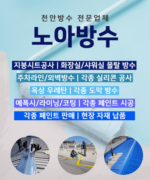 노아방수는 지붕시트공사/화장실/샤워실 몰탈방수/주차라인/외벽방수